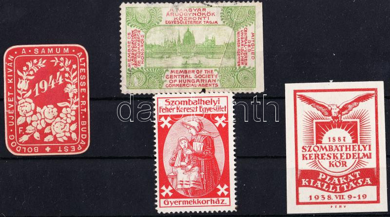 Leírás: 4 klf levélzáró: A Magyar Áruügynökök Központi Egyesülete, Szombathelyi Fehérkereszt Egyesület, Samum Altesse