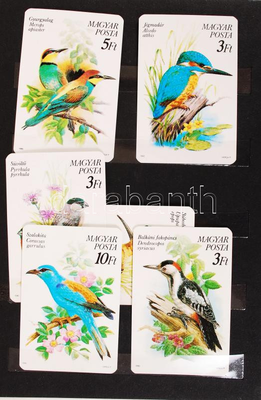 Leírás: 1991 A Magyar Posta által kiadott védett madarak bélyegsorozatot népszerűsítő kártyanaptárak, 6 db
