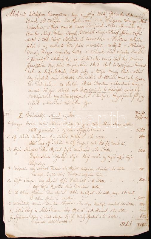 Leírás: 1808-1824 Devecser, 2 db Devecser környéki földek használatával kapcsolatos okiratok
