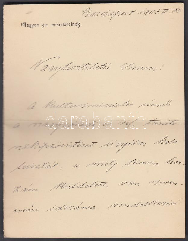 1905 Tisza István miniszterelnök saját kézzel írt és aláírt levele ref... https://www.darabanth.com/hu/208-Gyorsarveres/208.0/Festmeny-mutargy-papirregiseg-egyeb/Tortenelmi-dokumentumok-keziratok-erdekessegek~30028/1905-Tisza-Istvan-miniszterelnok-sajat-kezzel-irt-es-alairt-levele-reformatus-egyhazi-ugy~II852634