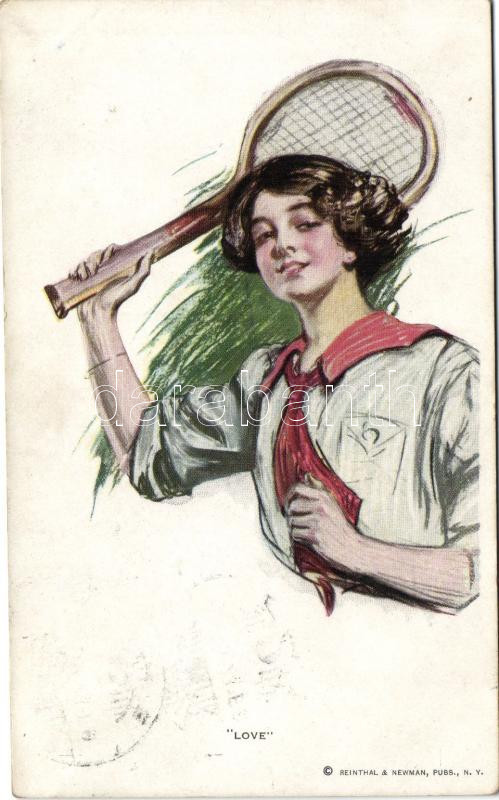 Love, tennis, Reinthal & Newman, N.Y. No. 128. https://www.darabanth.com/hu/208-Gyorsarveres/208.0/Kepeslapok/Muvesz~30090/Love-tennis-Reinthal-Newman-NY-No-128~II850392