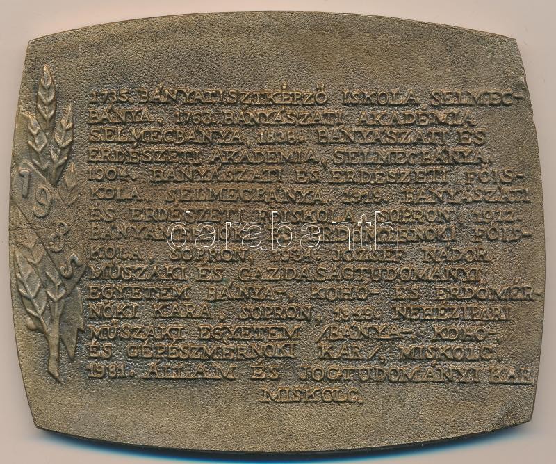 Leírás: 1985. "250 éves a hazai bányászati és kohászati felsőoktatás - Samuel Mikovíny" Br emlékplakett (109x89mm) T:2