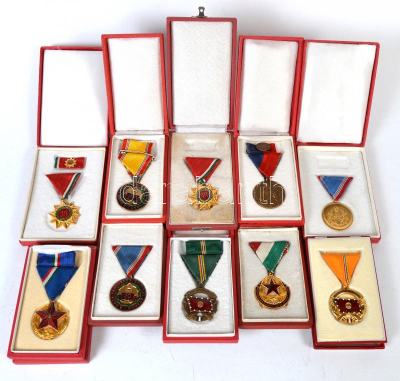 Leírás: 10db szocialista kitüntetés dísztokban, közte 1957. "Munkás-Paraszt Hatalomért Emlékérem" mellszalaggal dísztokban, 1964. "Munkásőr" kitüntetés mellszalagon szalagsávval és miniatűrrel dísztokban T:vegyes
