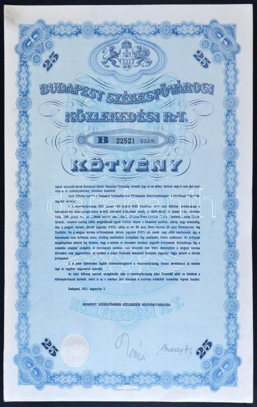 1923. "Budapest Székesfővárosi Közlekedési Rt." "BB" kötvénye szárazpe... https://www.darabanth.com/hu/208-Gyorsarveres/208.0/Numizmatika/Reszvenyek-es-sorsjegyek~4/1923-Budapest-Szekesfovarosi-Kozlekedesi-Rt-BB-kotvenye-szarazpecsettel-szelvenyekk~II846231