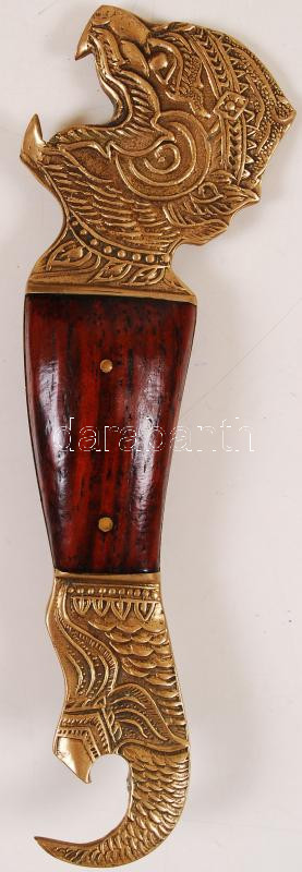 Leírás: Dekoratív réz-fa sörnyitó, h:12 cm