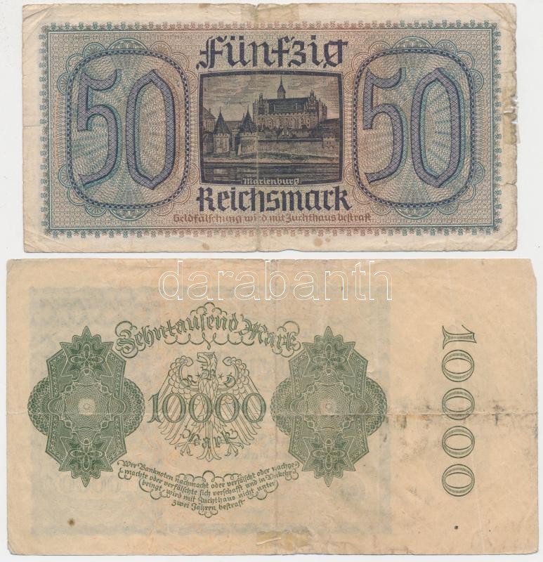 Német Birodalom / Weimari Köztársaság 1922. 10.000M (3x) + 1922. 50.000M + Harmadik Birodalom 1940-1945. 50M T:III,III-