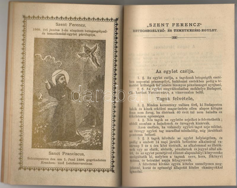 1886 A Szt Ferenc Betegsegélyező és Temetkezési Egylet igazolványa mag... https://www.darabanth.com/hu/21-Gyorsarveres/21.0/Festmeny-mutargy-papirregiseg-egyeb/Nyomtatvanyok~147/1886-A-Szt-Ferenc-Betegsegelyezo-es-Temetkezesi-Egylet-igazolvanya-magyar-es-namet-nyelven-k~II39342