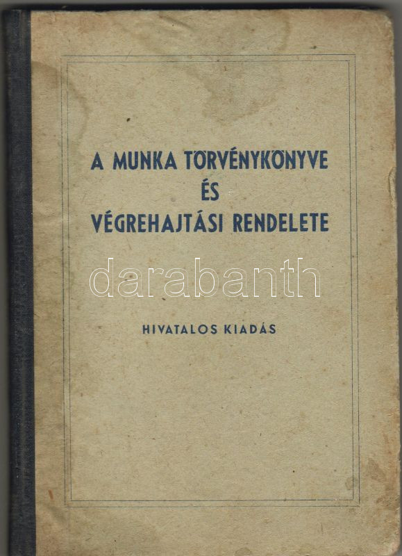 1953 A Munka Törvénykönyve és Végrehajtási rendelete https://www.darabanth.com/hu/21-Gyorsarveres/21.0/Festmeny-mutargy-papirregiseg-egyeb/Nyomtatvanyok~147/1953-A-Munka-Torvenykonyve-es-Vegrehajtasi-rendelete~II39346
