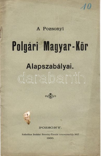 A pozsonyi Magyar Polgári Kör alapszabályai; Katholikus Irodalmi Részv... https://www.darabanth.com/hu/21-Gyorsarveres/21.0/Festmeny-mutargy-papirregiseg-egyeb/Nyomtatvanyok~147/A-pozsonyi-Magyar-Polgari-Kor-alapszabalyai-Katholikus-Irodalmi-Reszveny-Tarsulat-konyvnyomd~II32182