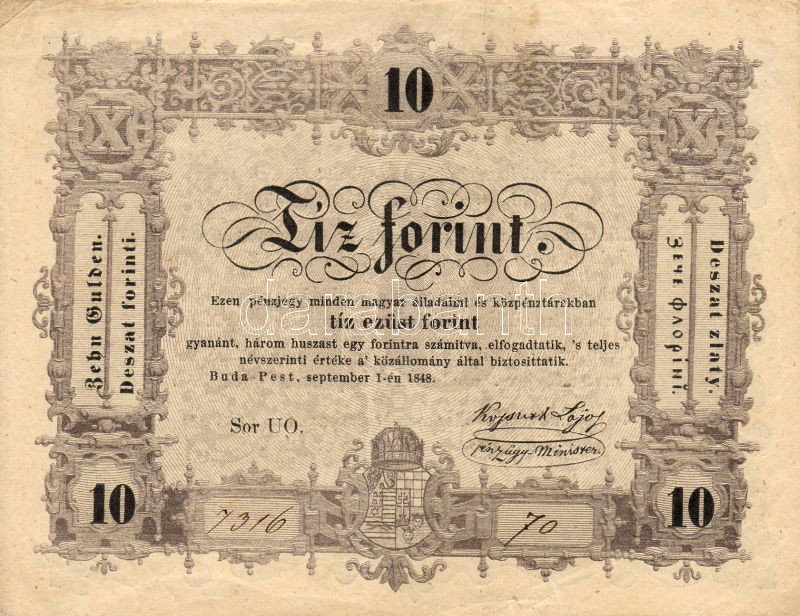 1848 10Ft értékjelzés erősen lefelé csúszva ! T:II https://www.darabanth.com/hu/21-Gyorsarveres/21.0/Numizmatika/Papirpenzek~136/1848-10Ft-ertekjelzes-erosen-lefele-csuszva-TII~II40040