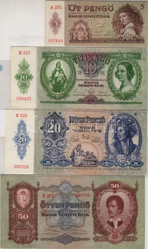 1932-41 5P, 10P, 20P, 50P 4 klf. db T:I https://www.darabanth.com/hu/21-Gyorsarveres/21.0/Numizmatika/Papirpenzek~136/1932-41-5P-10P-20P-50P-4-klf-db-TI~II40026