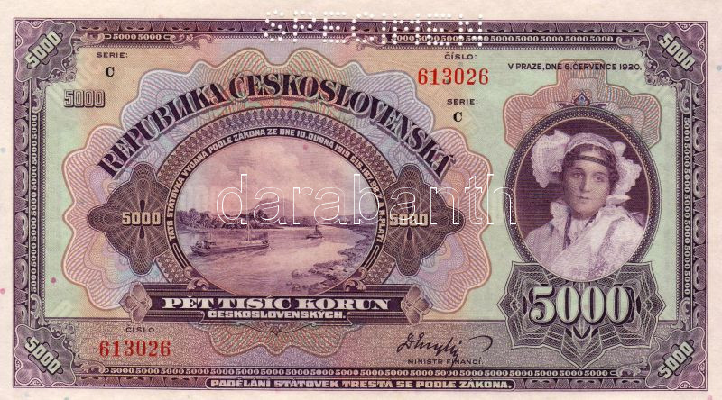 Csehszlovákia 1920 1000K "Specimen" T:I R! https://www.darabanth.com/hu/21-Gyorsarveres/21.0/Numizmatika/Papirpenzek~136/Csehszlovakia-1920-1000K-Specimen-TI-R~II39240