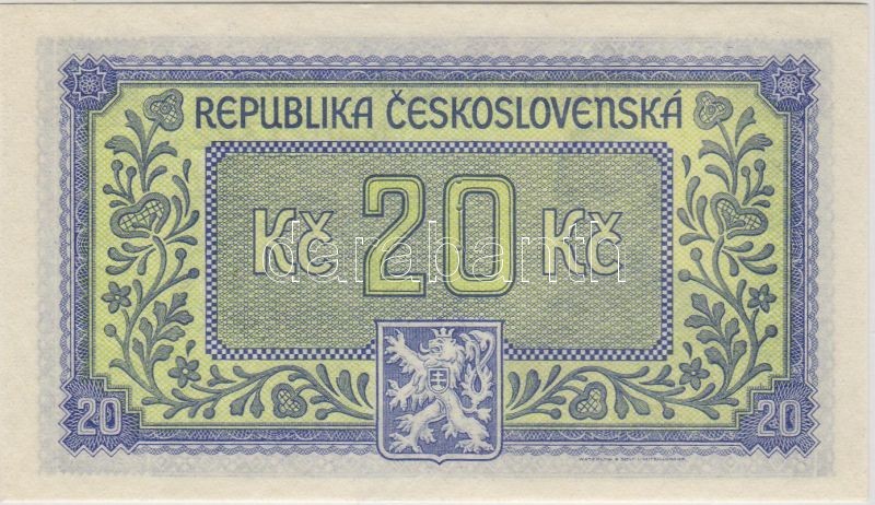 Csehszlovákia 1945 20K 3-as lyukasztással T:I https://www.darabanth.com/hu/21-Gyorsarveres/21.0/Numizmatika/Papirpenzek~136/Csehszlovakia-1945-20K-3-as-lyukasztassal-TI~II39249