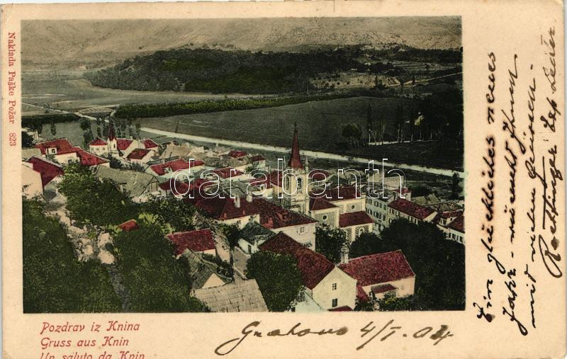 Knin, Naklada Paske Pozar https://www.darabanth.com/hu/21-Nagyaukcio/21.1/Magyar-kepeslapok/Horvatorszag-Delvidek~7341/Knin-Naklada-Paske-Pozar~II1018556
