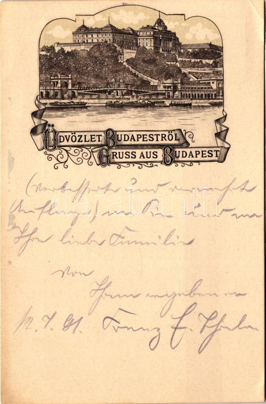 Leírás: 1891 (!!) Budapest, Gruss aus Budapest; ritka, korai képeslap, ismeretlen kiadás / rare early 'Gruss aus...' postcard (EK)