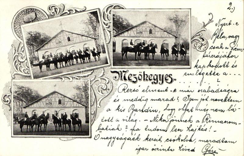 1899 Mezőhegyes, Fedett lovarda; Art Nouveau https://www.darabanth.com/hu/21-Nagyaukcio/21.1/Magyar-kepeslapok/Magyarorszag~7337/1899-Mezohegyes-Fedett-lovarda-Art-Nouveau~II1017281