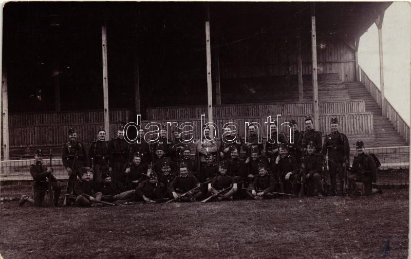 Leírás: 1914 Újszeged, SZAK pálya, katonai csoportkép; a Brenner Testvérek fényképészeti műterméből / photo