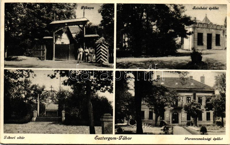 Esztergom Tábor, színházi épület, parancsnokság, tábori oltár https://www.darabanth.com/hu/21-Nagyaukcio/21.1/Magyar-kepeslapok/Magyarorszag~7337/Esztergom-Tabor-szinhazi-epulet-parancsnoksag-tabori-oltar~II1081955
