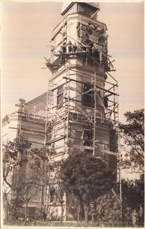 Leírás: Gádoros, Katolikus Templom felújítás alatt; Kucsa György fényképészeti műterme / photo
