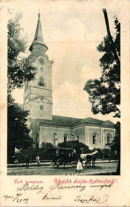 Hajdúszoboszló, Református templom, lovasfogat https://www.darabanth.com/hu/21-Nagyaukcio/21.1/Magyar-kepeslapok/Magyarorszag~7337/Hajduszoboszlo-Reformatus-templom-lovasfogat~II1073982