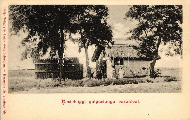 Leírás: Hortobágy, Gulyástanya vasalóval; kiadja Telegdy K. Lajos utóda, Haranghy amateur felvétele