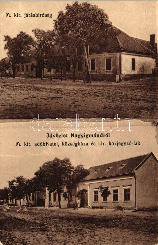 Nagyigmánd, Járásbíróság, adóhivatal, községháza, közjegyzői lak https://www.darabanth.com/hu/21-Nagyaukcio/21.1/Magyar-kepeslapok/Magyarorszag~7337/Nagyigmand-Jarasbirosag-adohivatal-kozseghaza-kozjegyzoi-lak~II1066426