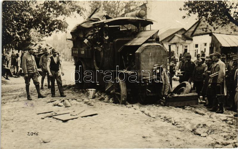 I. világháborús magyar tüzérek, egy lerobbant lőszer szállító teherautó / WWI Hungarian artillerymen, a broken ammunition transport, Matik Duschnik photo