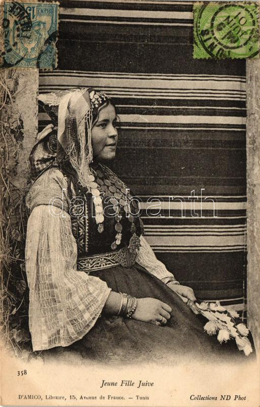Jeune fille Juive / young jewish girl, Tunisia, Judaica https://www.darabanth.com/hu/21-Nagyaukcio/21.1/Motivum-kepeslapok/Ausztria~7941/Jeune-fille-Juive-young-jewish-girl-Tunisia-Judaica~II1045436