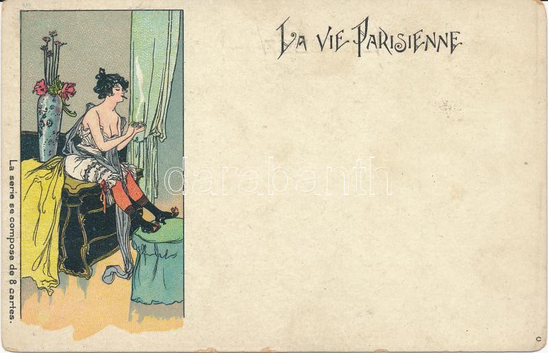 Leírás: La Vie Parisienne / French erotic litho art postcard (worn edges)