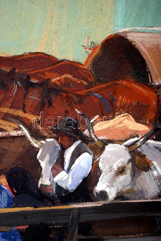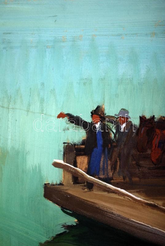 Leírás: Meilinger Dezső (1892-1960): Kompon 1935. Tempera, karton, jelzett, újszerű keretben 70x80 cm