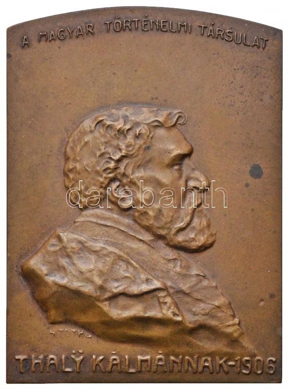 Hungary 1906. "The Hungarian Historcal Society to Kálmán Thaly - 1906" Br plaque. Sign.: K. Tóth L. (65x28mm) C:XF