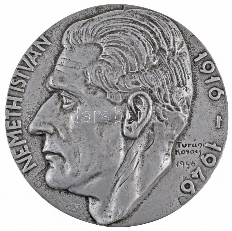 Turáni Kovács Imre (1910-1975) / Lányi K. 1946. "Németh István 1916-1946 / Szeretettel a T.E. színjátszó gárdájától 30 éves jubileuma alkalmából" Al emlékérem (152mm) T:2,2- lyuktömött