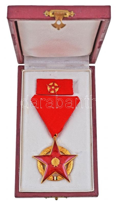 1957. "Vörös Csillag Érdemrend" aranyozott peremű zománcozott bronz kitüntetés mellszalagon, szalagsávval és miniatűrrel T:1-