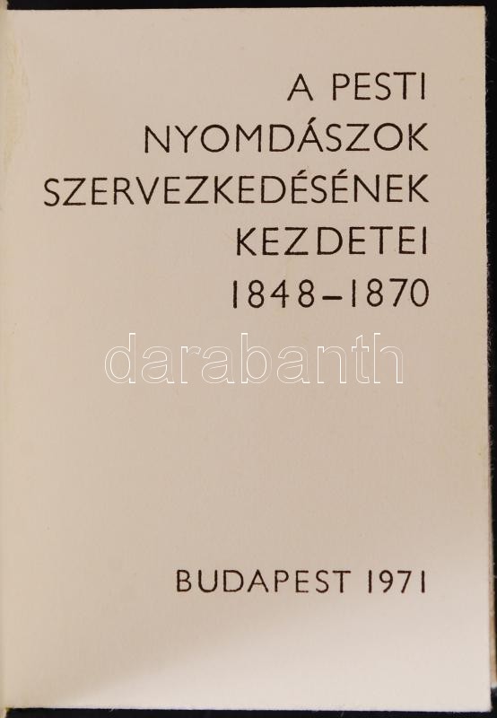 Végh Oszkár: A pesti nyomdászok szervezkedésének kezdetei 1848-1870. B... https://www.darabanth.com/hu/210-Gyorsarveres/210.0/Festmeny-mutargy-papirregiseg-egyeb/Konyvek-Minikonyvek~600037/Vegh-Oszkar-A-pesti-nyomdaszok-szervezkedesenek-kezdetei-1848-1870-Bp-1971-Minikonyv-meg~II817526