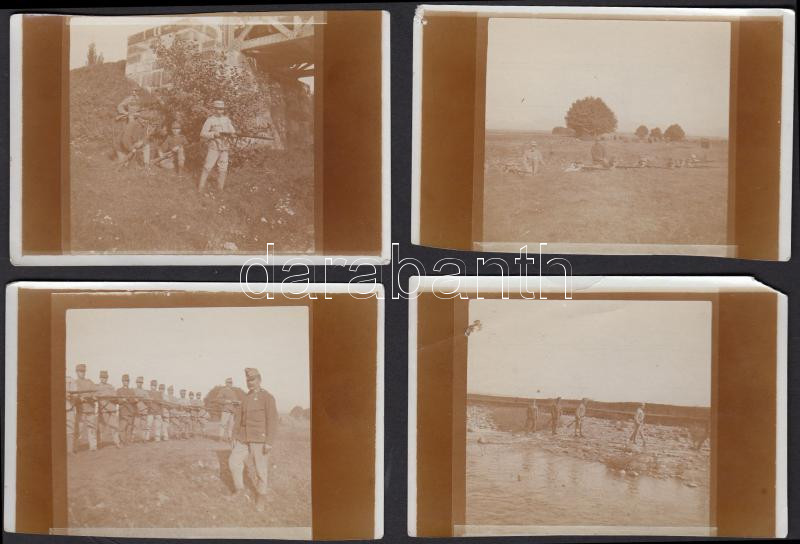 Leírás: 1914 december, Katonai fotó, Hídőrség, 4 db fotó az I. vh-ból, kettő datálva, 6x9 cm