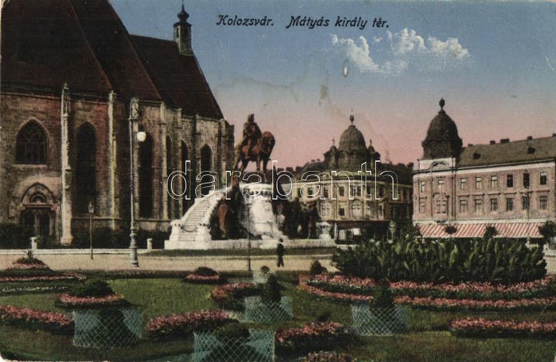 Kolozsvár, Mátyás király tér, szobor / square, statue (EK) https://www.darabanth.com/hu/210-Gyorsarveres/210.0/Kepeslapok/Erdely~6/Kolozsvar-Matyas-kiraly-ter-szobor-square-statue-EK~II862077