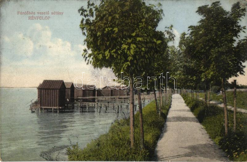 Leírás: Révfülöp, Fürdőhöz vezető sétány; kiadja Csényi Istvánné (ázott sarok)