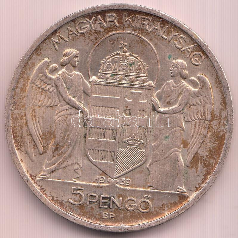 Leírás: 1939. 5P Ag "Horthy-balra" T:2-