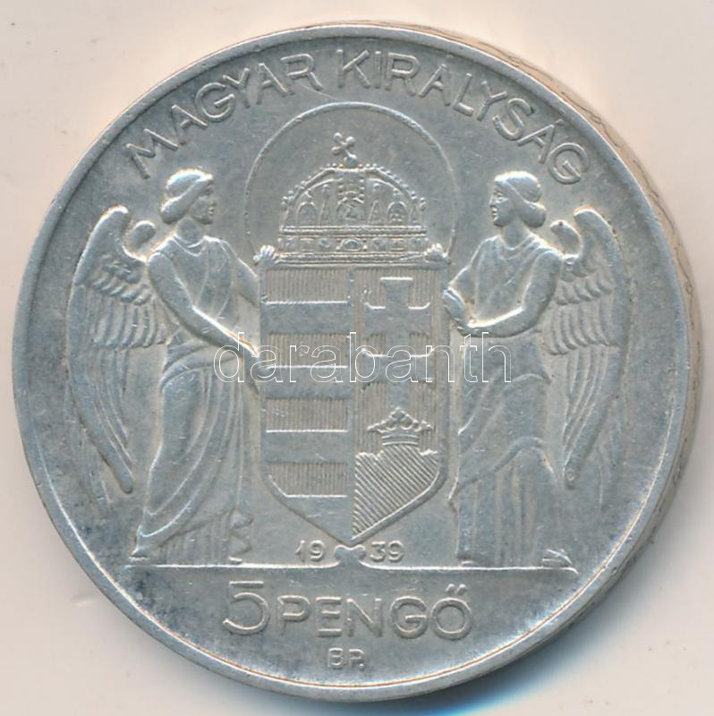 1939. 5P Ag "Horthy-balra" T:2- https://www.darabanth.com/hu/210-Gyorsarveres/210.0/Numizmatika/Magyar-fem-es-ezustpenzek~100/1939-5P-Ag-Horthy-balra-T2-~II868183