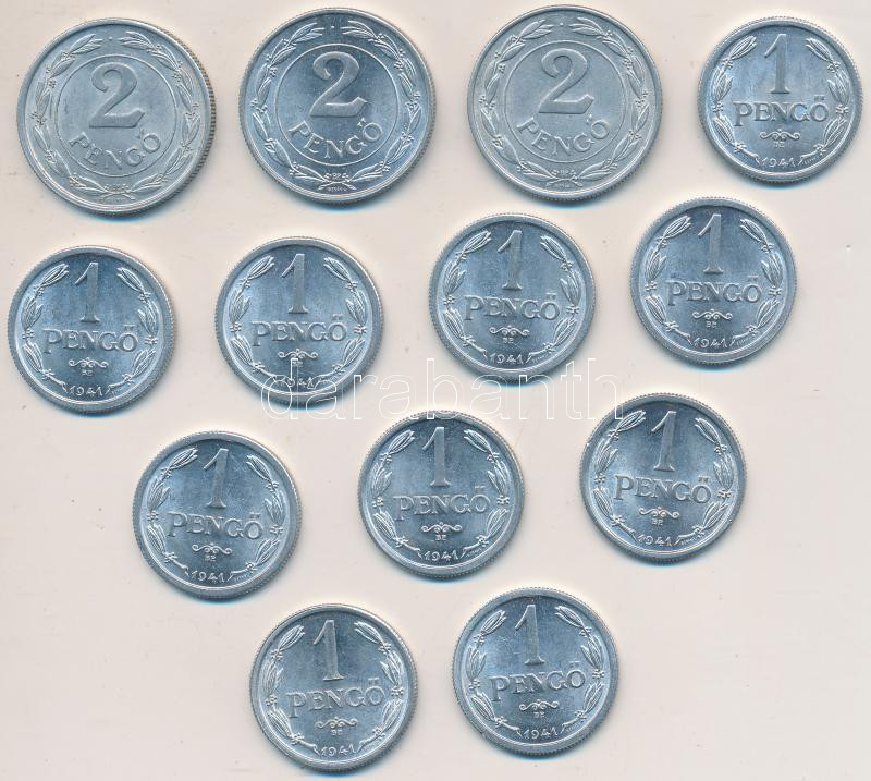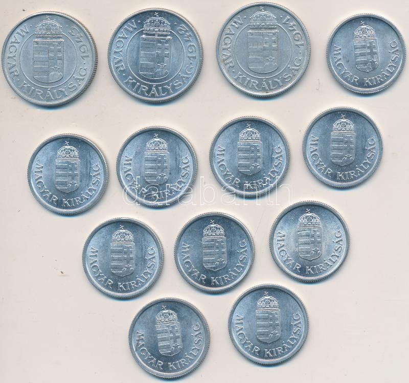 1941-1943. 1-2P Al (13x) T:2 https://www.darabanth.com/hu/210-Gyorsarveres/210.0/Numizmatika/Magyar-fem-es-ezustpenzek~100/1941-1943-1-2P-Al-13x-T2~II863494