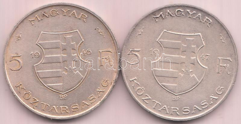 Leírás: 1946. 5Ft Ag vastag "Kossuth" + 1947. 5Ft Ag "Kossuth" pár T:2-