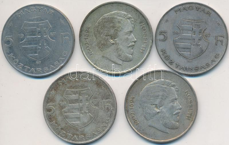 Leírás: 1947. 5Ft Ag "Kossuth" (5x) T:vegyes