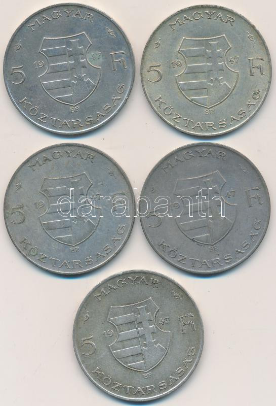 Leírás: 1947. 5Ft Ag "Kossuth" (5x) T:vegyes