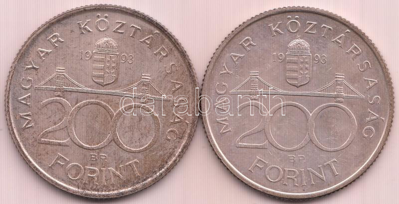 Leírás: 1993. 200Ft Ag "MNB" (2x) T:2-