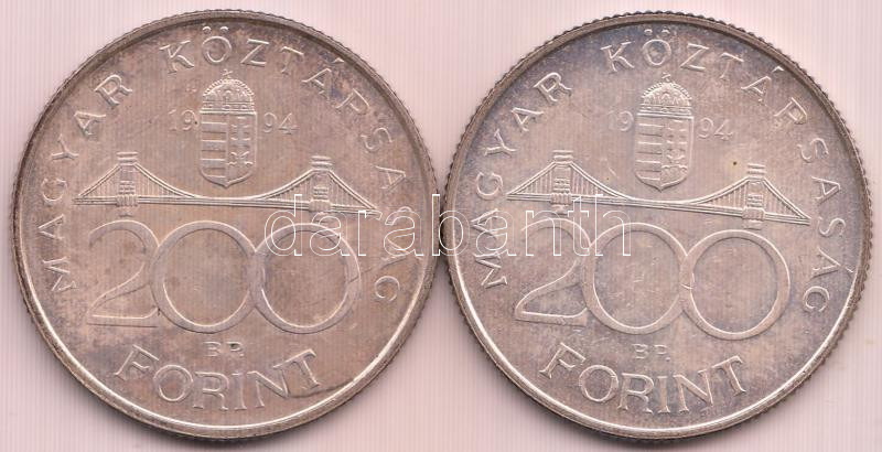 Leírás: 1994. 200Ft Ag "Deák" (2x) T:2-