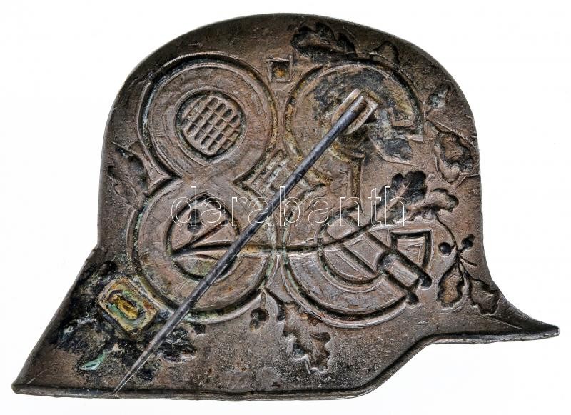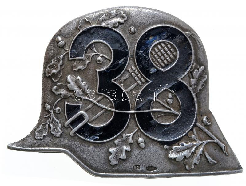 Osztrák-Magyar Monarchia ~1915. "A Császári és Királyi 38. Gyalogezred" nemesfém jelzett ezüst sapkajelvénye rögzítő hibával (35x49mm/8.44g) T:2- (zománc kopás)