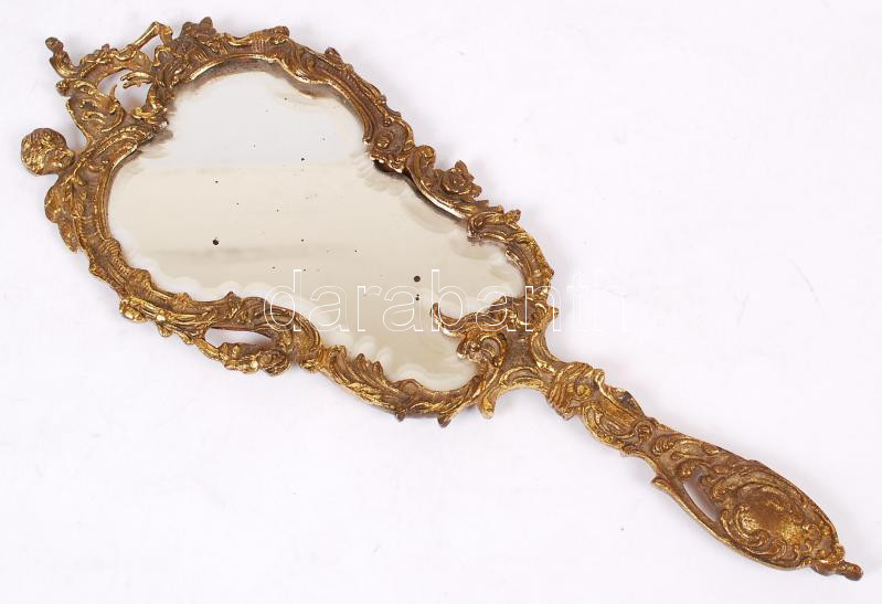 Gazdagon díszített réz kézitükör, metszett hibátlan tükörrel, 30×11 cm https://www.darabanth.com/hu/211-Gyorsarveres/211.0/Festmeny-mutargy-papirregiseg-egyeb/Bolhapiac~400315/Gazdagon-diszitett-rez-kezitukor-metszett-hibatlan-tukorrel-30C39711-cm~II871731