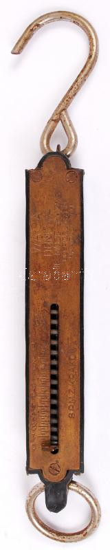Leírás: Régi kézi húzós mérleg, fém, 10 kg-ig