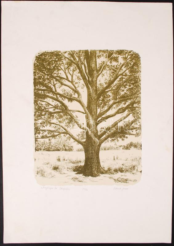 Leírás: Németi Judit (1954-): Magányos fa. Rézkarc, papír, jelzett, 27×21 cm