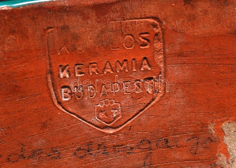 Leírás: Komlós vadász figura, máz hibákkal, kézzel festett, jelzett, m:11 cm